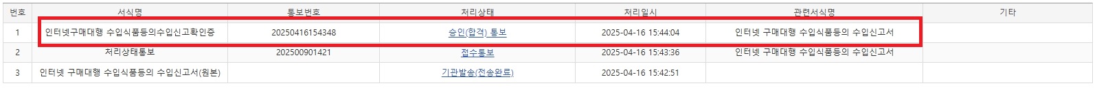 - '인터넷구매대행 수입식품 등의 수입신고서' 선택/클릭